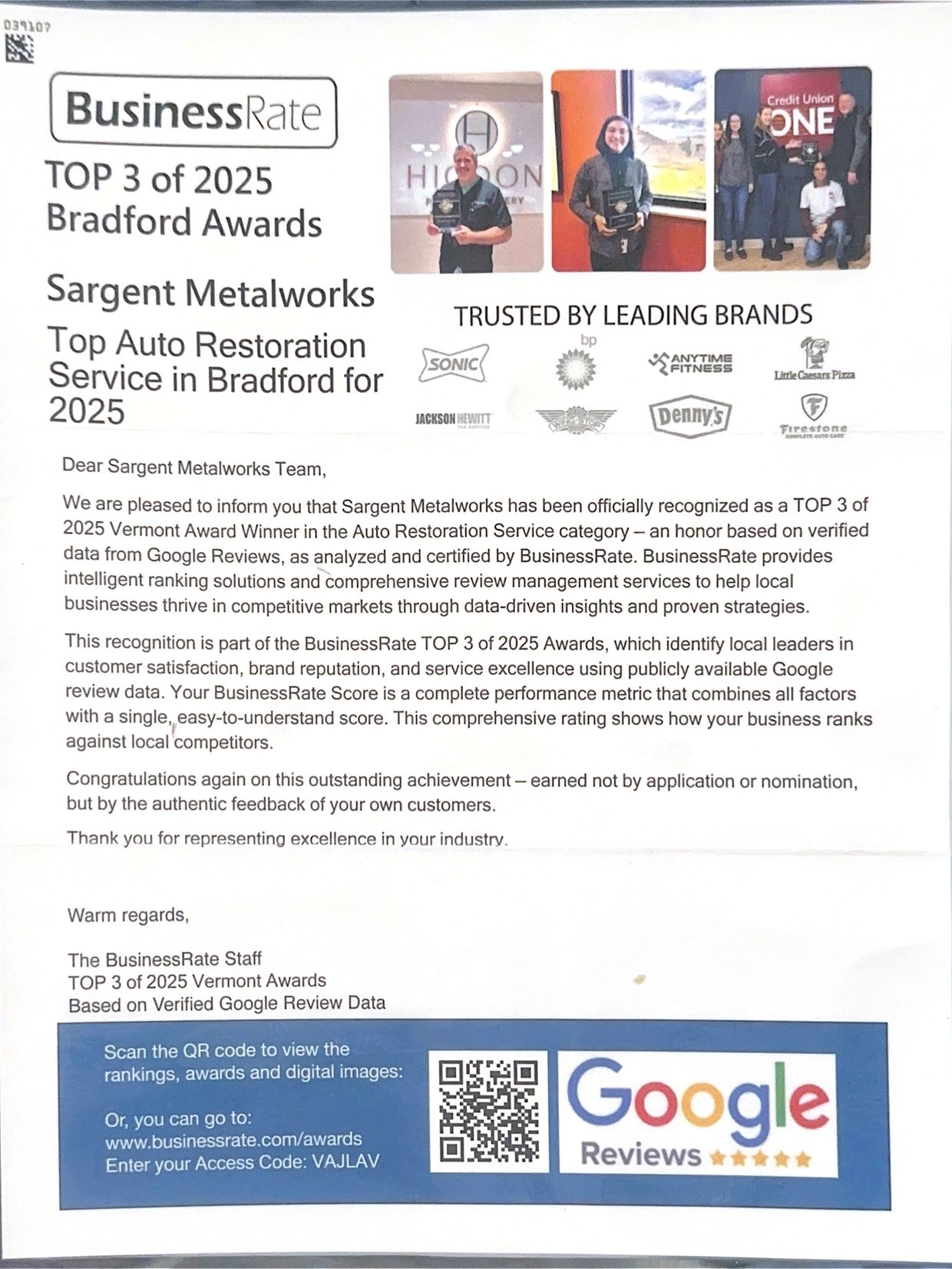 The crew of 4 highly specialized technicians at Sargent Metal Works are ready to care for your car and prepare it for either rallying or the show field.